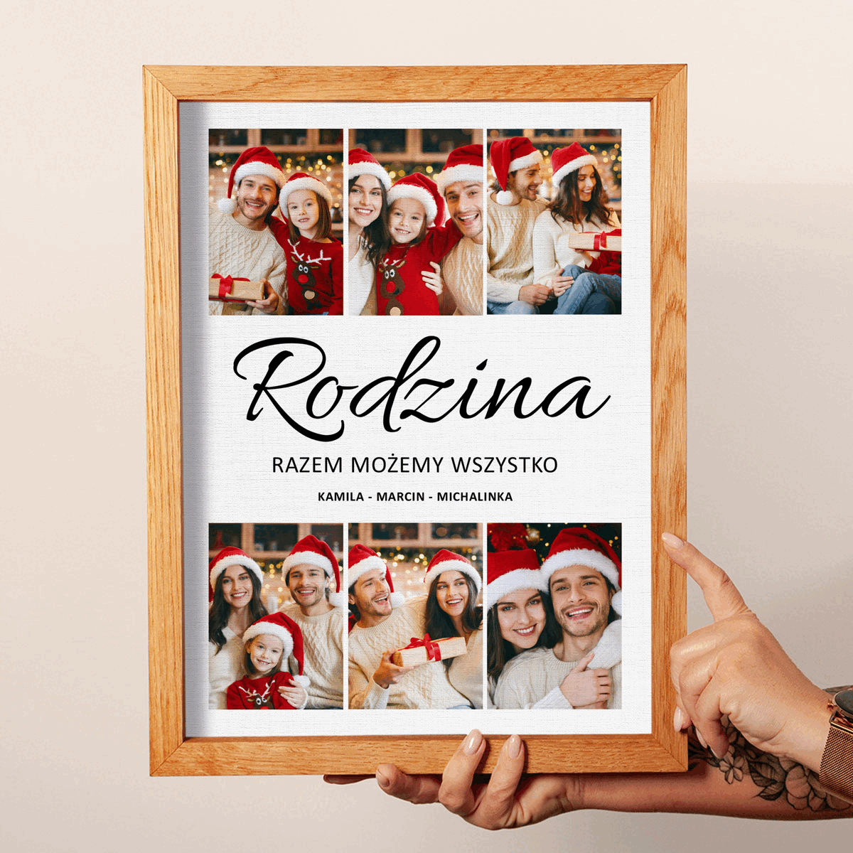 Możesz wybrać elegancki fotoobraz w drewnianej ramie, który dodaje klasycznego charakteru, lub nowoczesny fotoobraz bez ramy. Oba warianty to piękny, osobisty upominek, który podkreśli świąteczny klimat i stanie się pamiątką na lata.